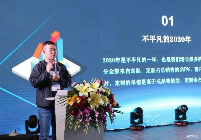华灯璀璨的开场仪式,点燃了现场如火如荼的气氛。芒果体育集团营销总经理陈玉伟先生对晚会进行了主题发言,他对2020年的营销工作进行了总结,并着重从营销工作部署、重点项目开展、产品整合、拎包帮扶、渠道运营和移动+定制整装优势等方面对2021年的营销工作做了全面的统筹规划。同时,他还讲解了“美国梦凯莎床垫”新品的产品工艺、市场优势、产品定位,使经销商对我们的新产品拥有更深入的认识和了解。